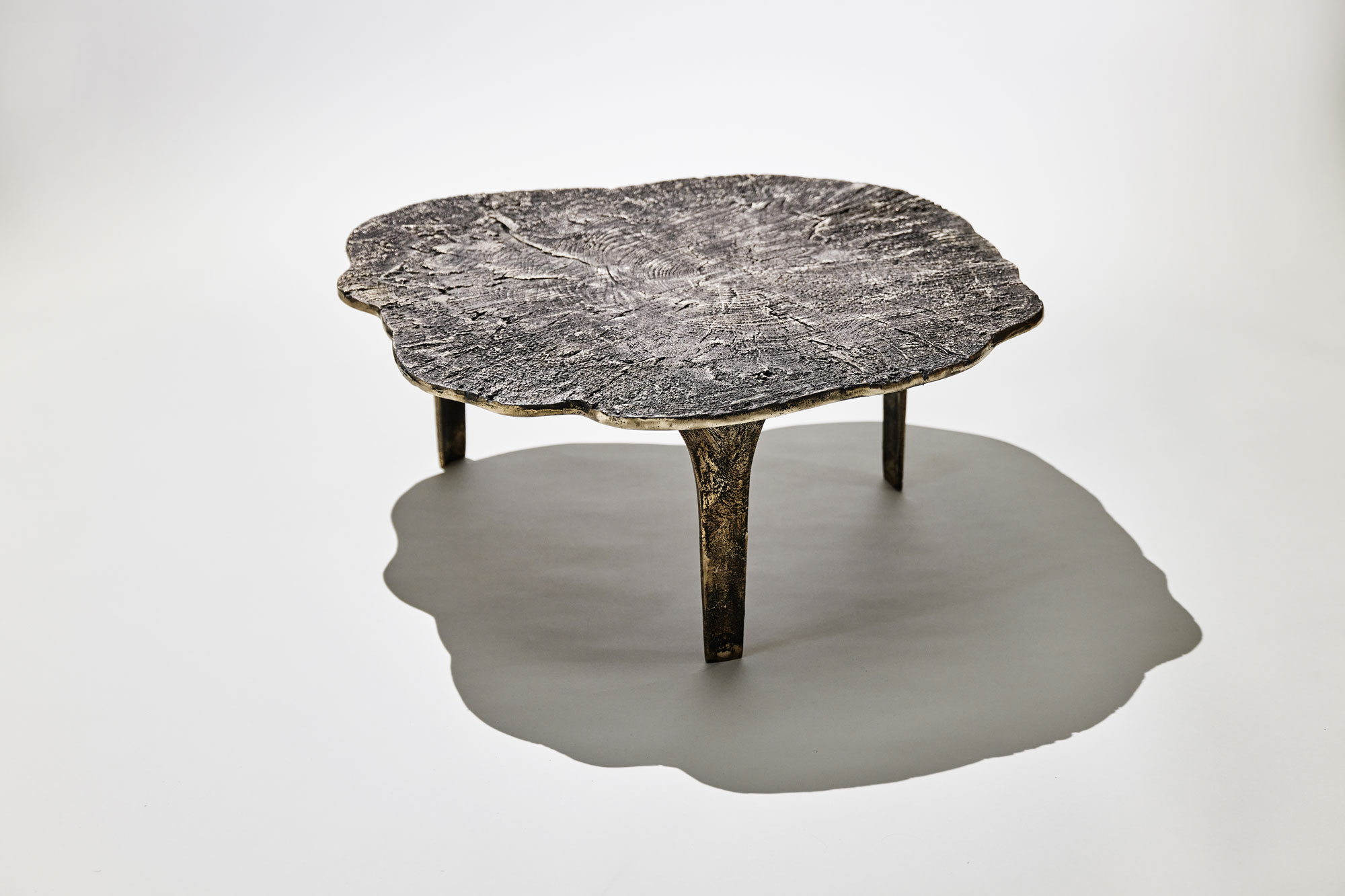 Every table is a unique piece, produced in a special sand-casting technique in brass, bronze or aluminium, individually abraded and polished.