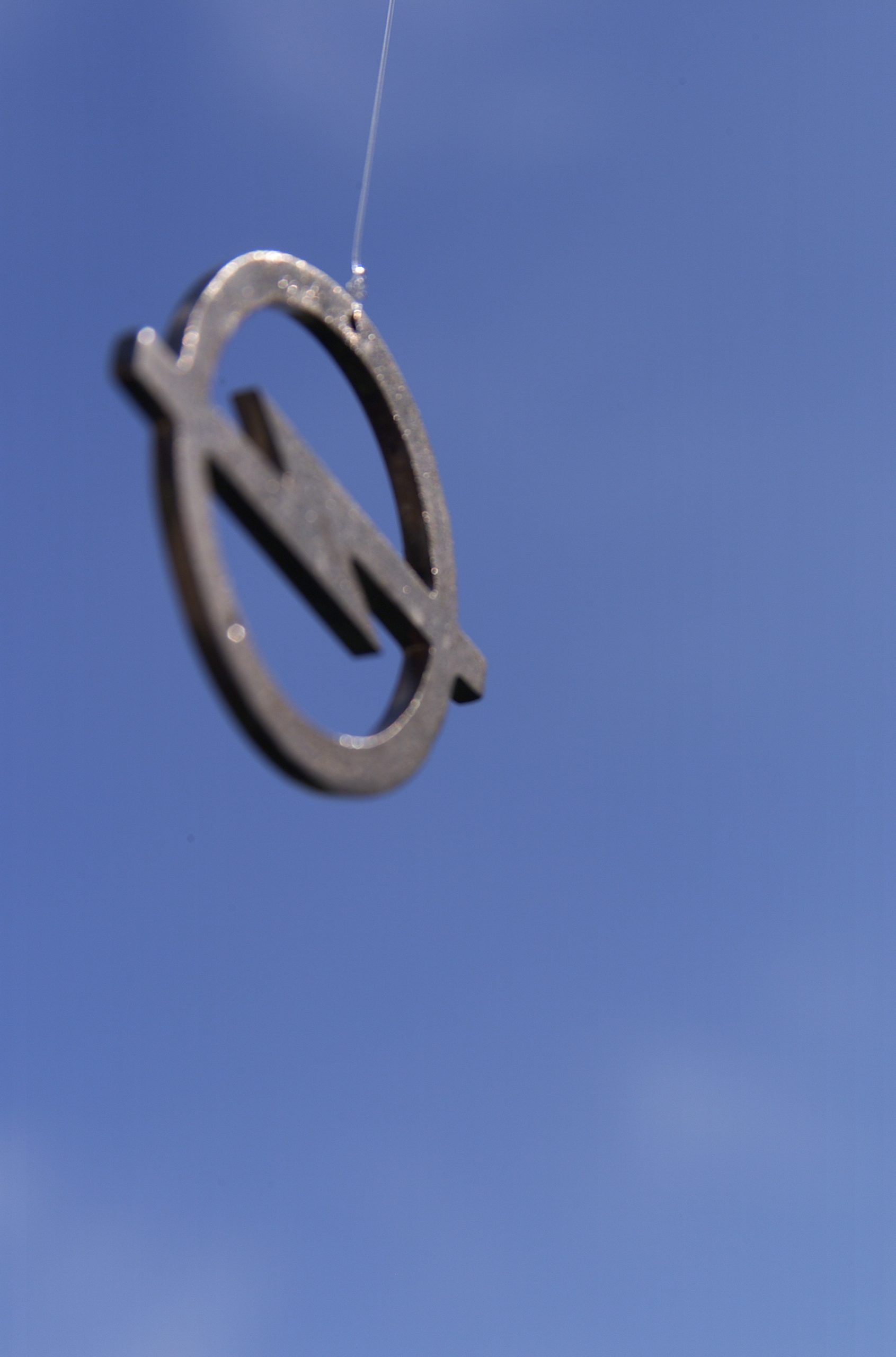 All pieces are handfinished in contrast to the car which is a mass production, but both are valuable pieces you want to have. The pieces are hanging on a transparent nylonstring so they are moving in the wind (action, dynamic) and reflect in the sunlight. The installation in the park in front of the castle and you can look at it from various angels of vision and it always looks different.